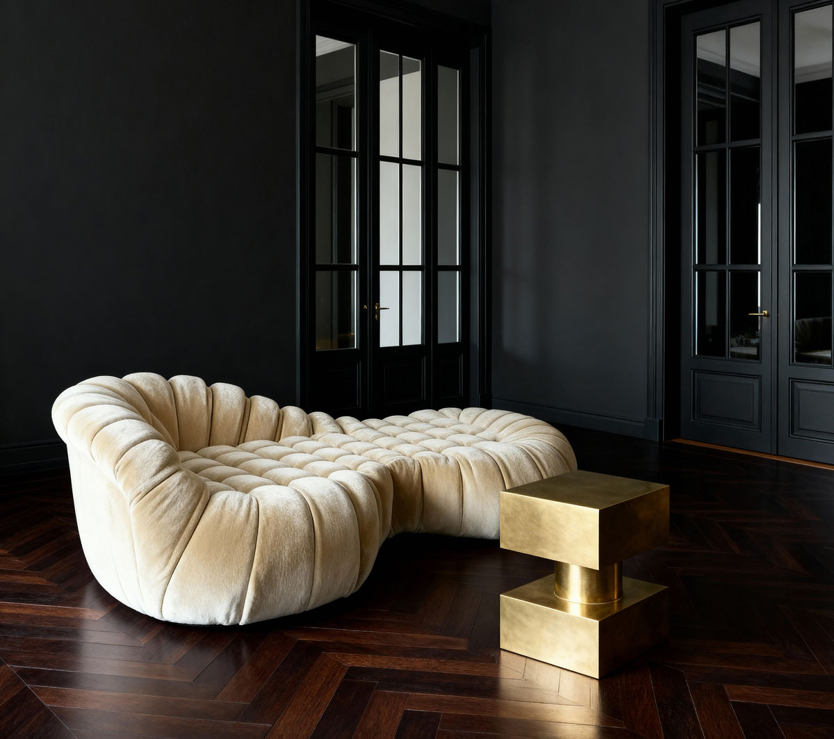 Despite its monolithic silhouette, the table exudes refinement. Its strict geometry is softened by the artisanal touch, creating a dialogue between precision and craft. Designed as a statement centrepiece, it lends itself equally to contemporary interiors seeking sculptural punctuation and more eclectic spaces that celebrate material richness. Both functional and expressive, the table embodies an elevated simplicity that celebrates brass not just as a material, but as a medium of pure form and spatial presence.
