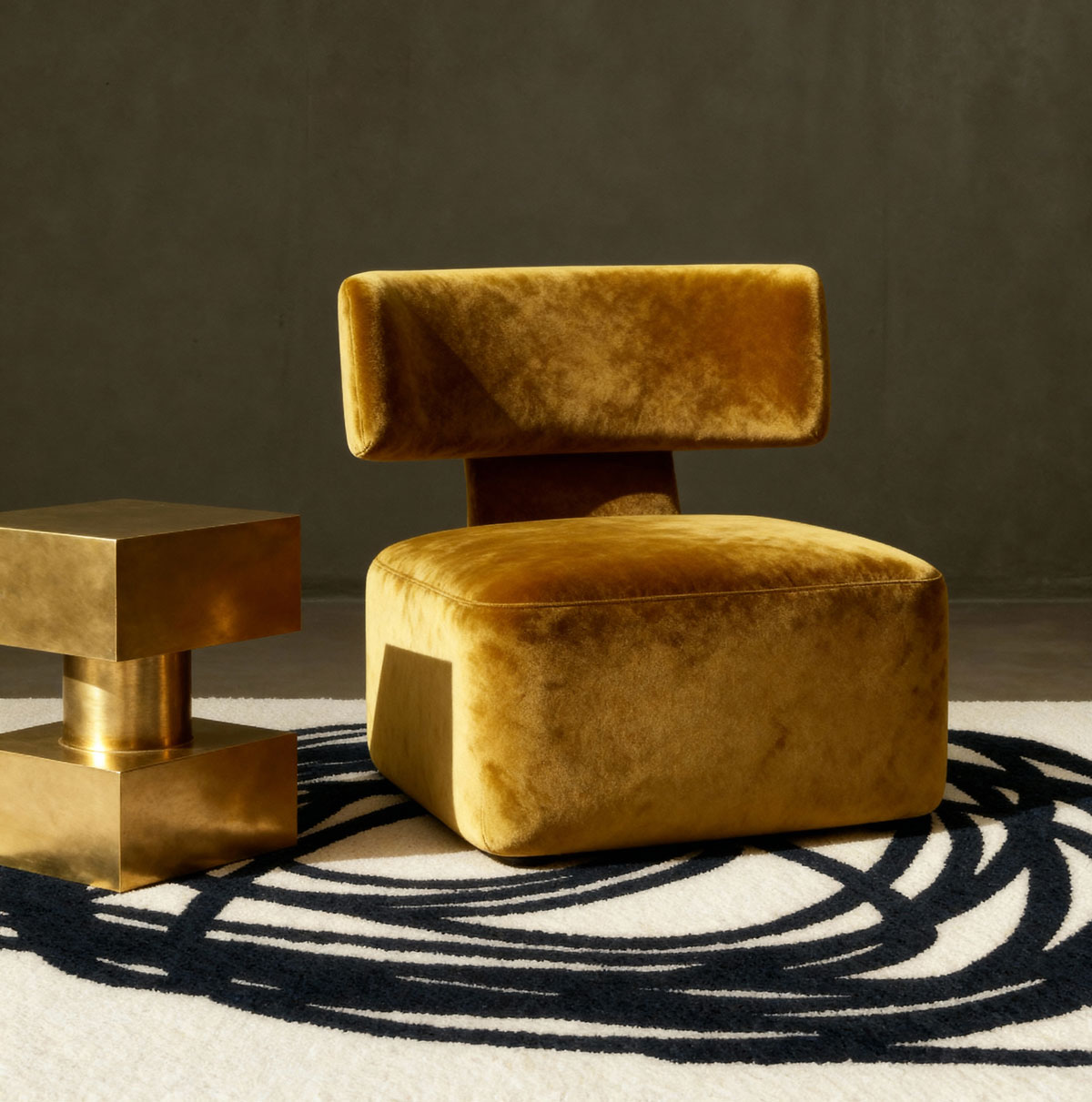 Despite its monolithic silhouette, the table exudes refinement. Its strict geometry is softened by the artisanal touch, creating a dialogue between precision and craft. Designed as a statement centrepiece, it lends itself equally to contemporary interiors seeking sculptural punctuation and more eclectic spaces that celebrate material richness. Both functional and expressive, the table embodies an elevated simplicity that celebrates brass not just as a material, but as a medium of pure form and spatial presence.