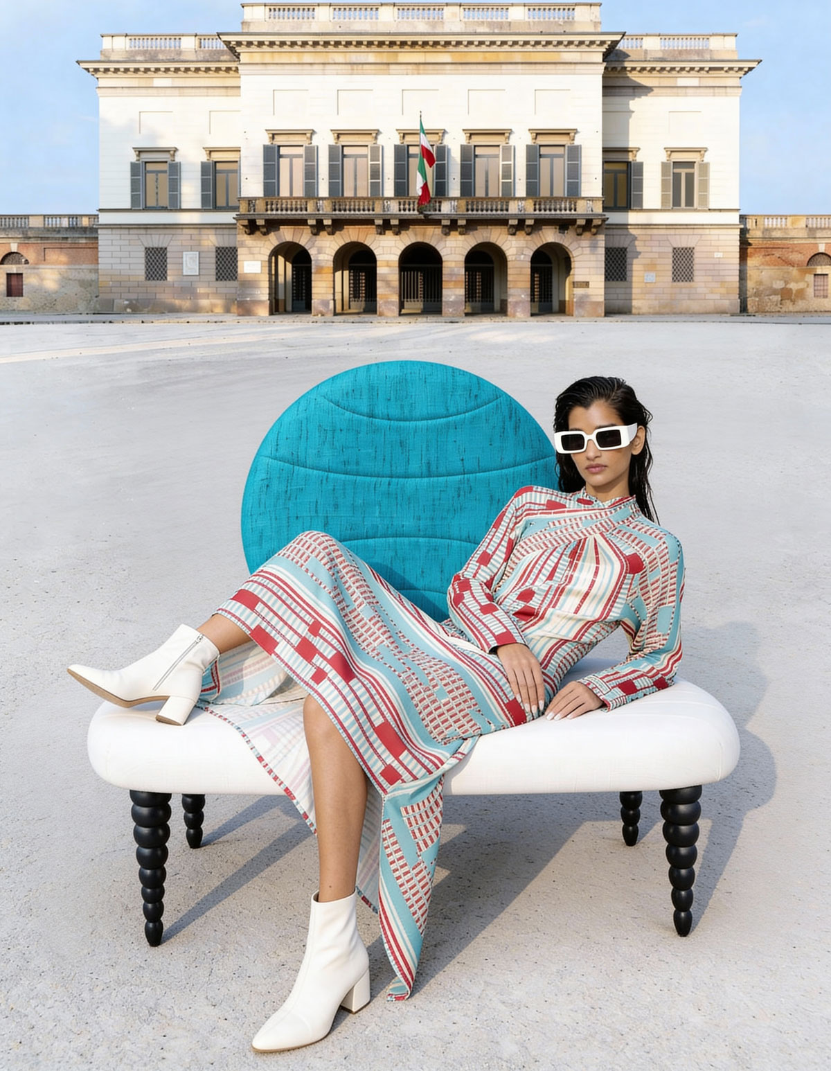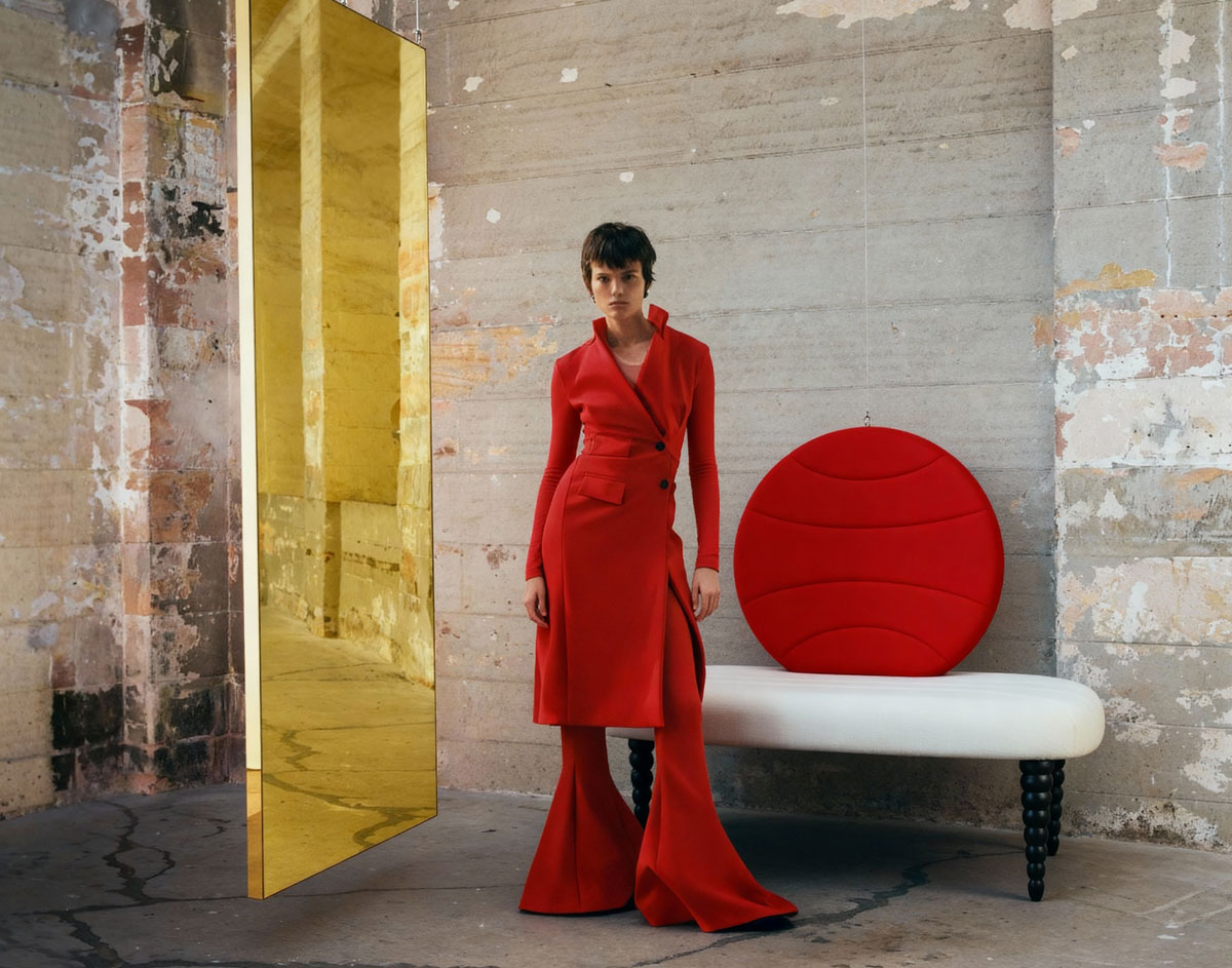 Austerity meets sculptural rhythm. Its rectilinear top, stripped of ornament, serves as a counterpoint to the stacked, cylindrical modules that read like beads on an architectural abacus. The design asserts that structure itself can be ornament.